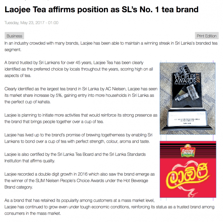 Laojee Tea affirms position as SL’s No. 1 tea brand