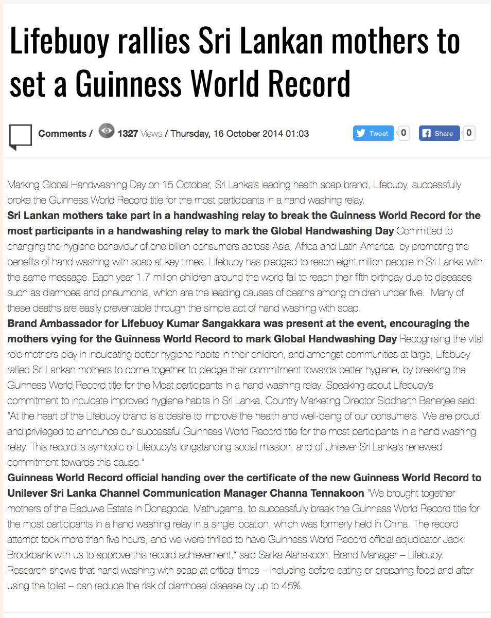 Lifebuoy rallies Sri Lankan mothers to set a Guinness World Record