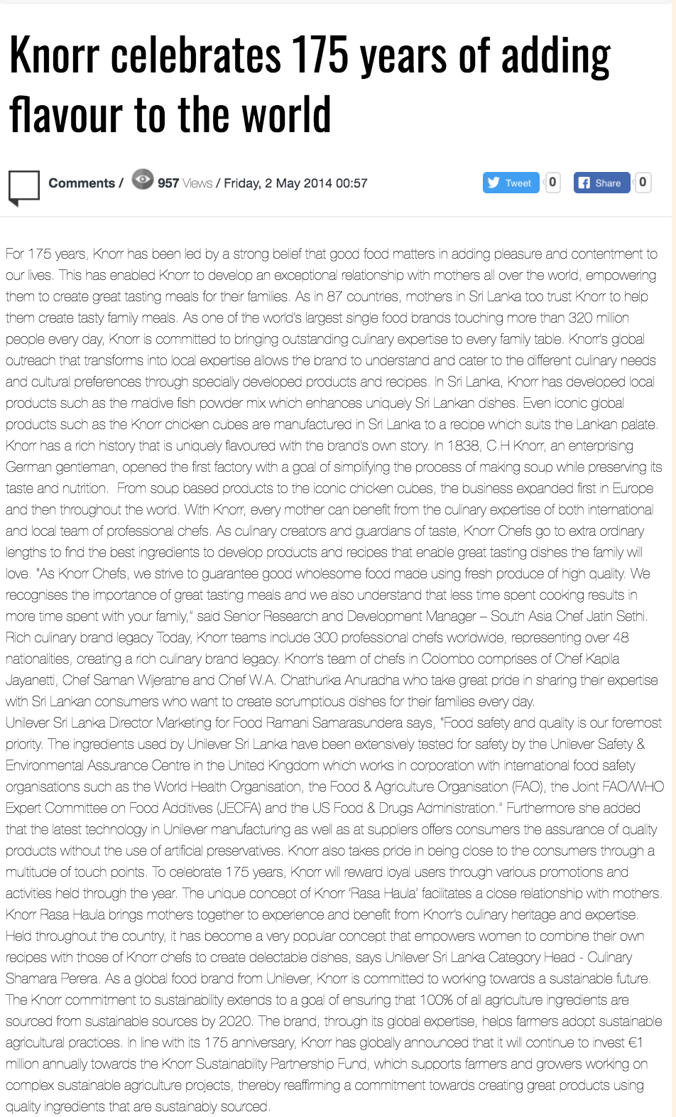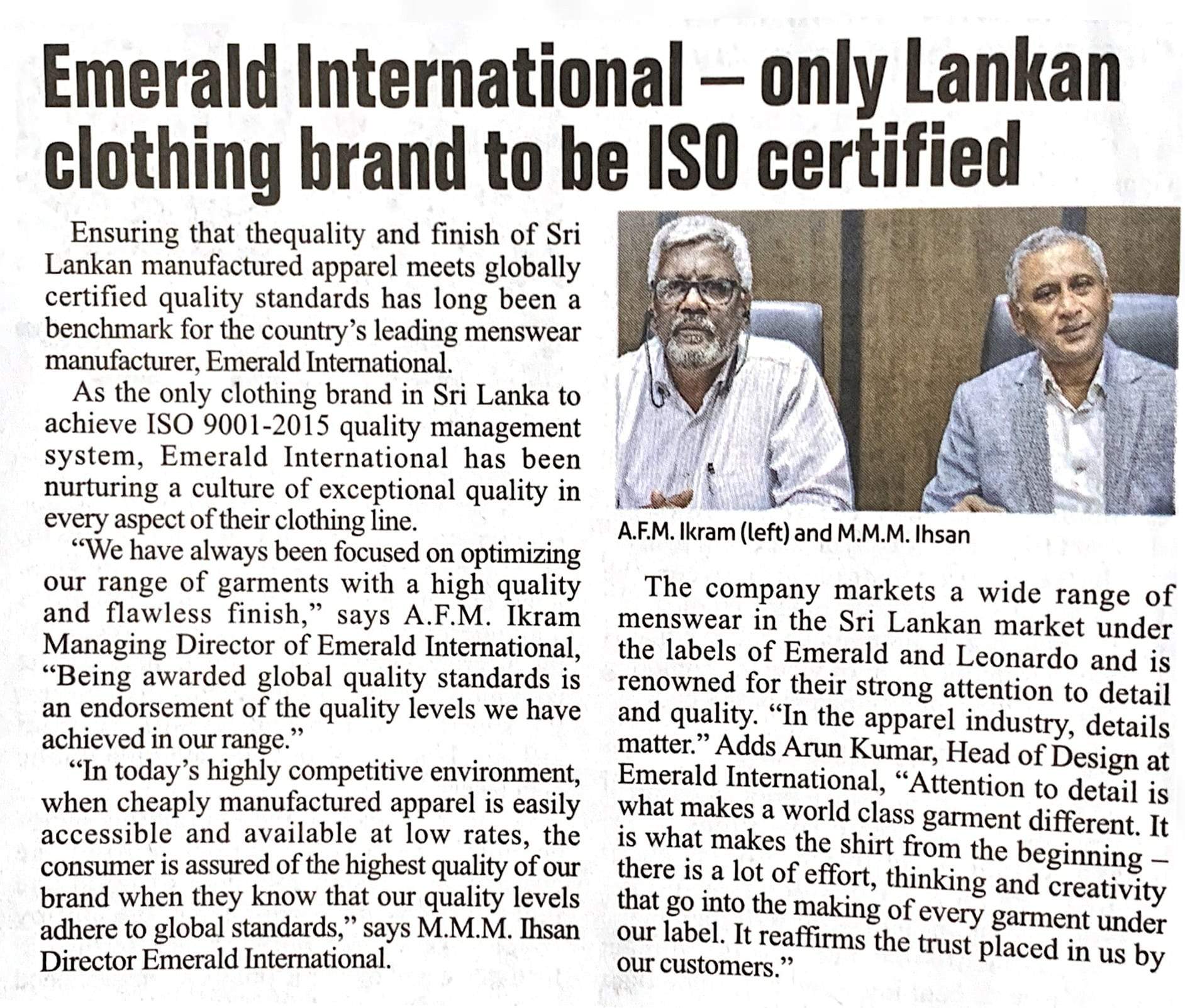 PR Campaign for Emerald International the only Sri Lankan clothing brand to be ISO 9001-2015 certified