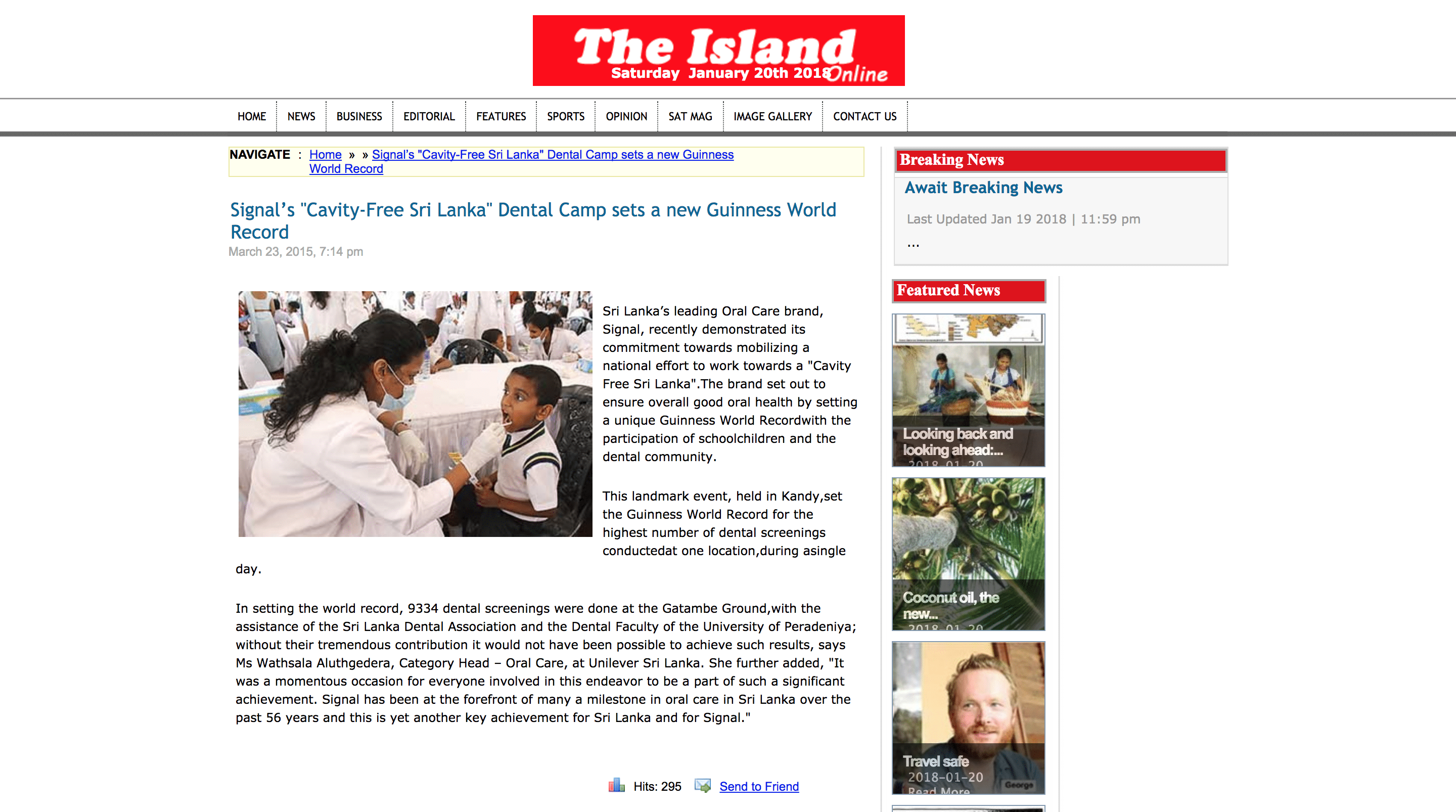 Sri Lanka’s leading Oral Care brand, Signal, recently demonstrated its commitment towards mobilizing a national effort to work towards a "Cavity Free Sri Lanka". Public Relations | Niche Corporate Communications.