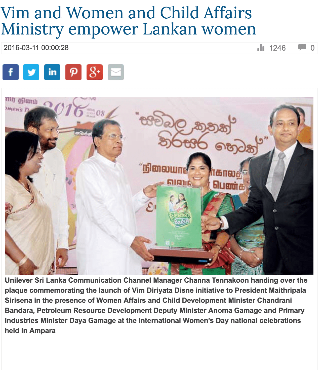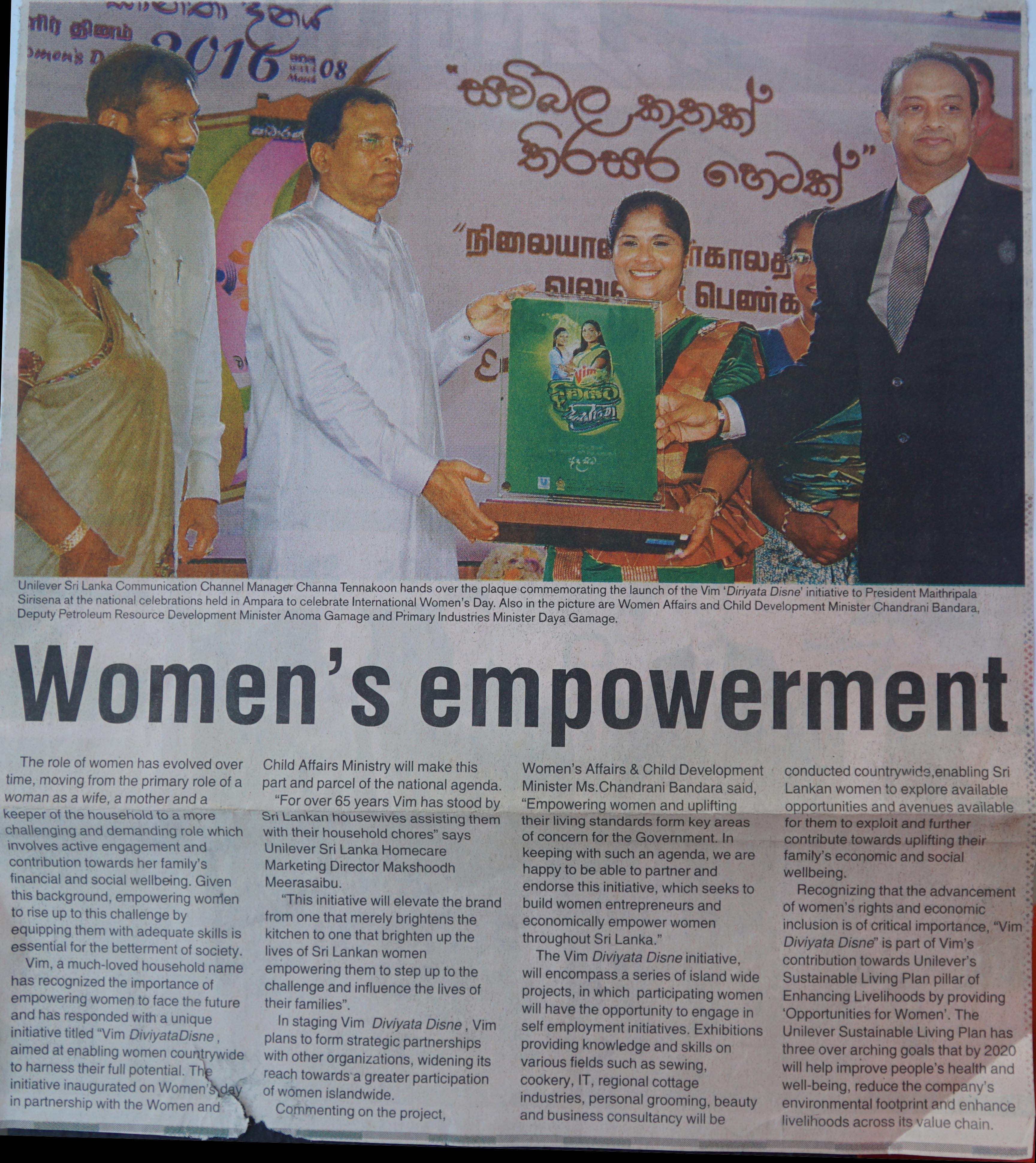 Unilever : Vim and Women and Child Affairs Ministry empower Lankan women.